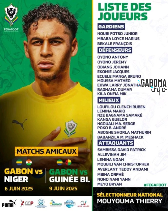 Annoncée pour ce vendredi, c’est finalement ce samedi matin que la Fédération gabonaise de football (Fegafoot) a rendu publique la liste des joueurs retenus pour les matchs amicaux de juin face au Niger (6 juin) et à la Guinée-Bissau (9 juin).