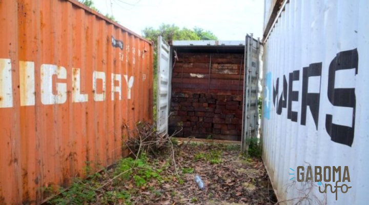 La visite de terrain a permis de déceler la présence d’environ dix (10) conteneurs abandonné chargés de kevazingo dont la coupe est interdite au Gabon depuis 2018.